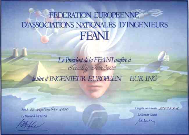 Le titre d'Ingénieur européen EUR-ING a été créé pour uniformiser le diplôme d'Ingénieur dans les différents pays d'Europe. Il n'est délivré qu'aux titulaires d'un diplôme officiel d'ingénieur, avec cependant quelques critères supplémentaires.